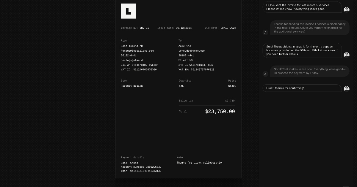 React PDF Invoice Template by Midday
